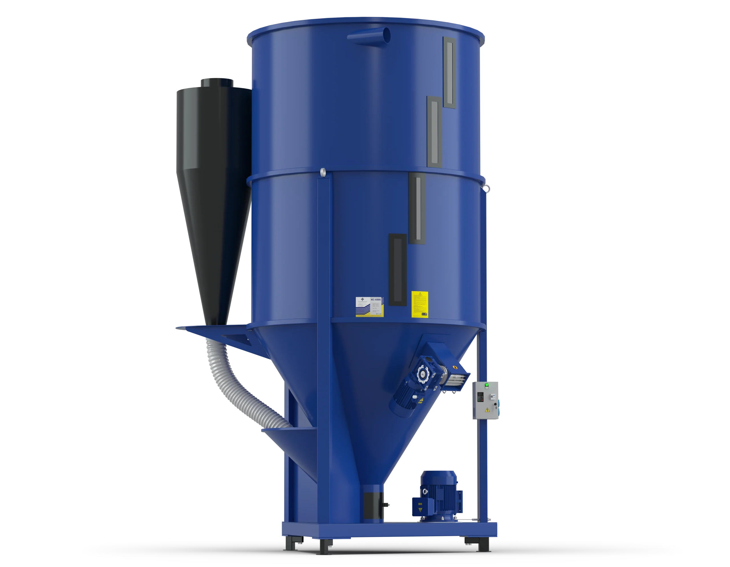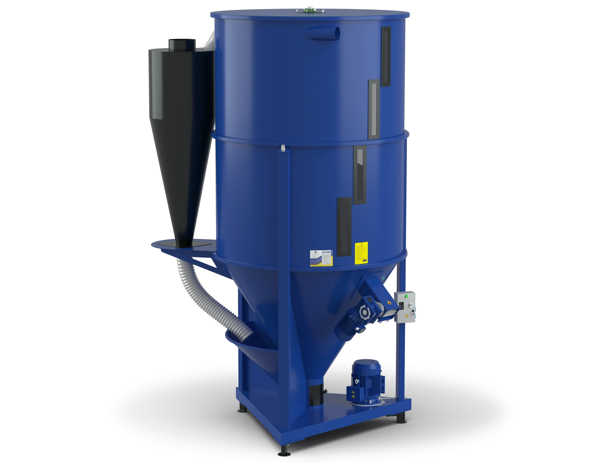 - Amestecare eficientă realizată printr-un șnec vertical care creează un flux continuu al produsului de jos în sus;