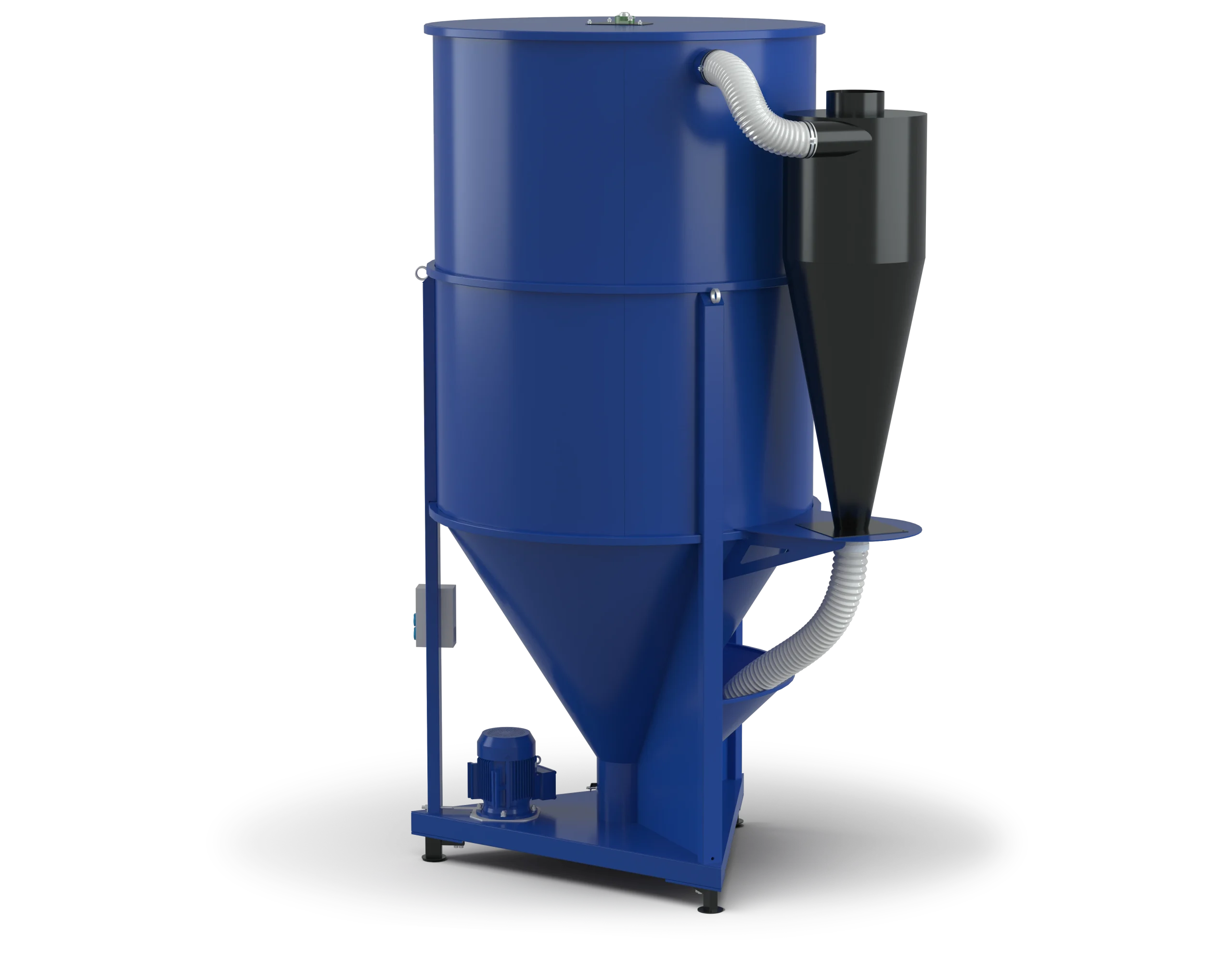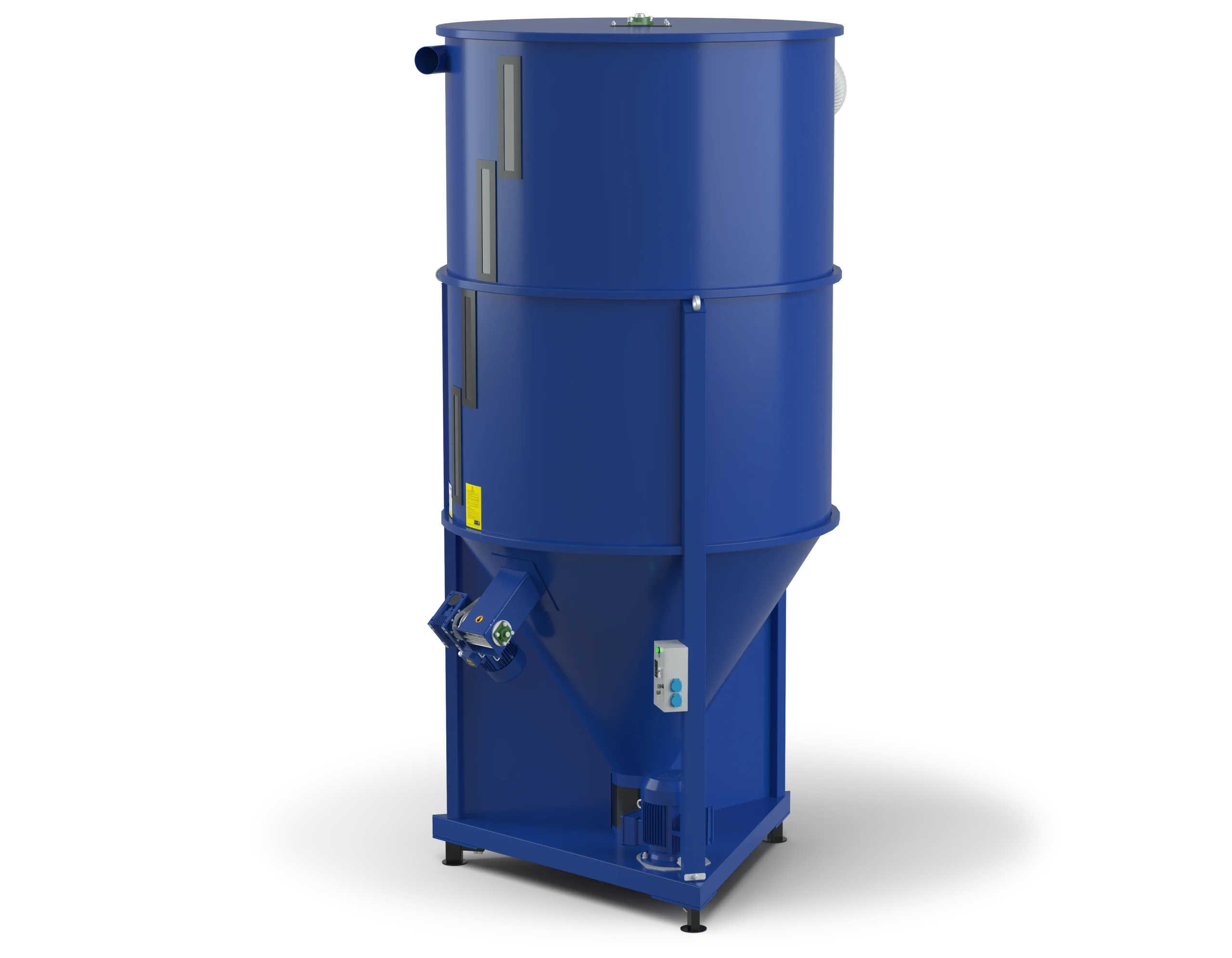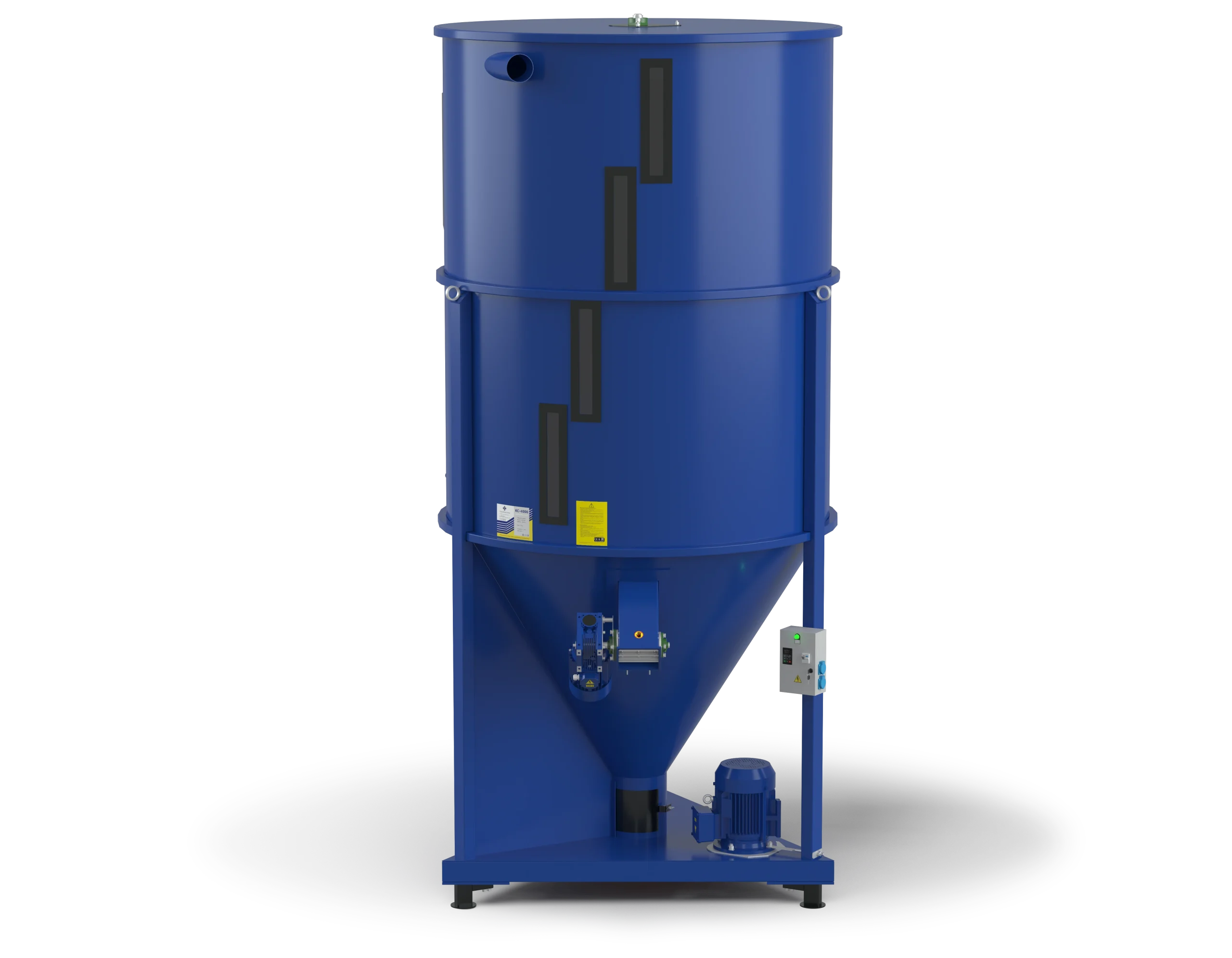 - Fereastră pentru prelevarea probelor și orificiu de descărcare cu clapetă pentru saci sau linii tehnologice ulterioare;