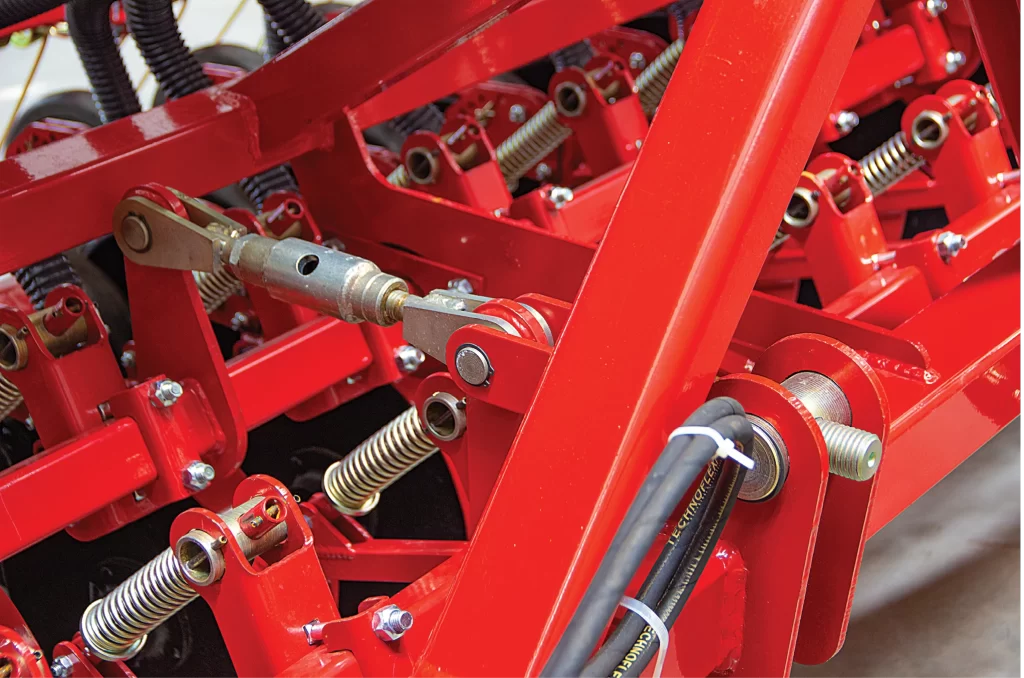 Arborii de legătură ai semănătorii din față și din spate sunt conectați printr-o legătură cu șurub. Șurubul este utilizat pentru reglarea în grup a adâncimii coasei.