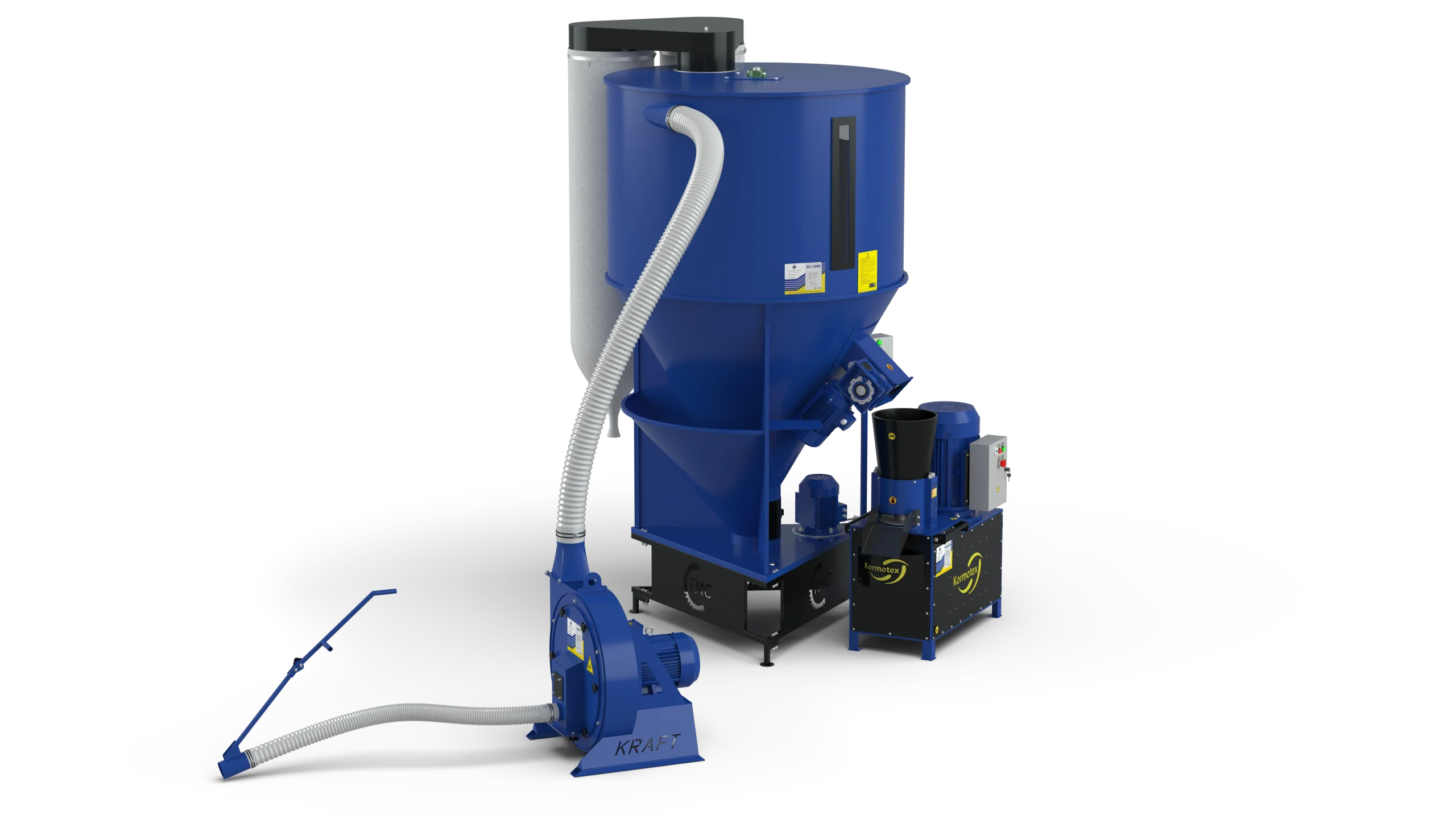 Linie de granulare Briko-1500 (zdrobitor de cereale Kraft-15 + amestecator furaje KS-1500 + granulatoare KORMOTEH-260)