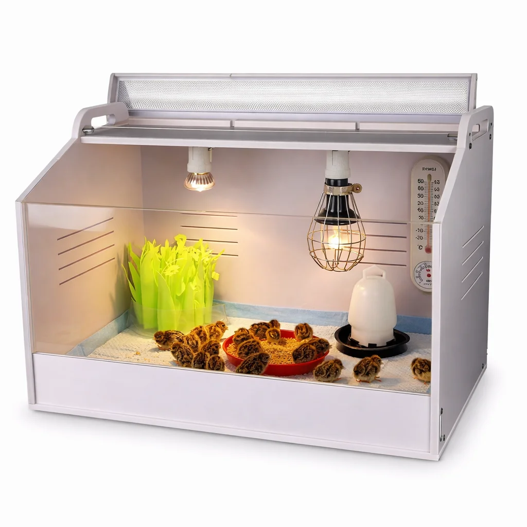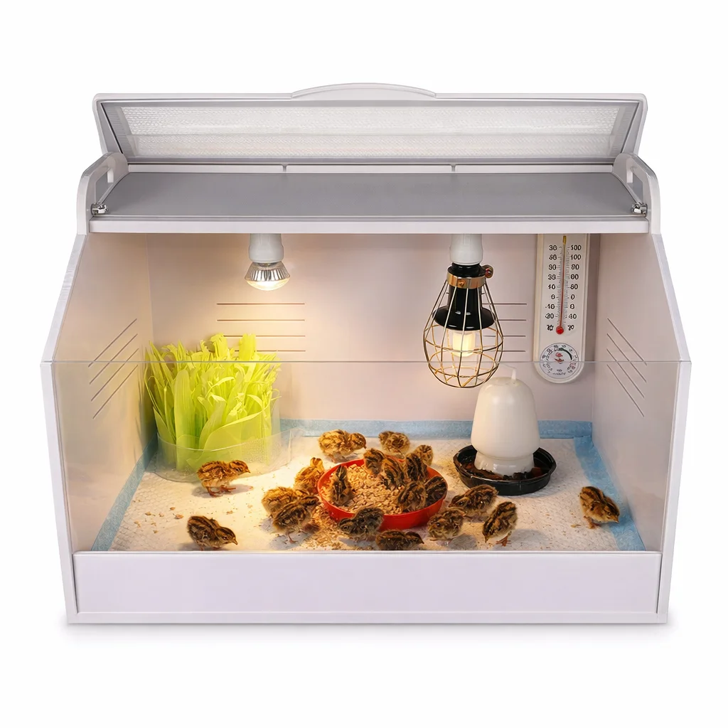 Construcția cu pereți transparenți permite monitorizarea permanentă a puilor, fără a fi nevoie de deschiderea frecventă a incintei. Sistemul de iluminare și încălzire ajută la menținerea unei temperaturi constante, iar higro-termometrul inclus permite controlul precis al mediului interior.