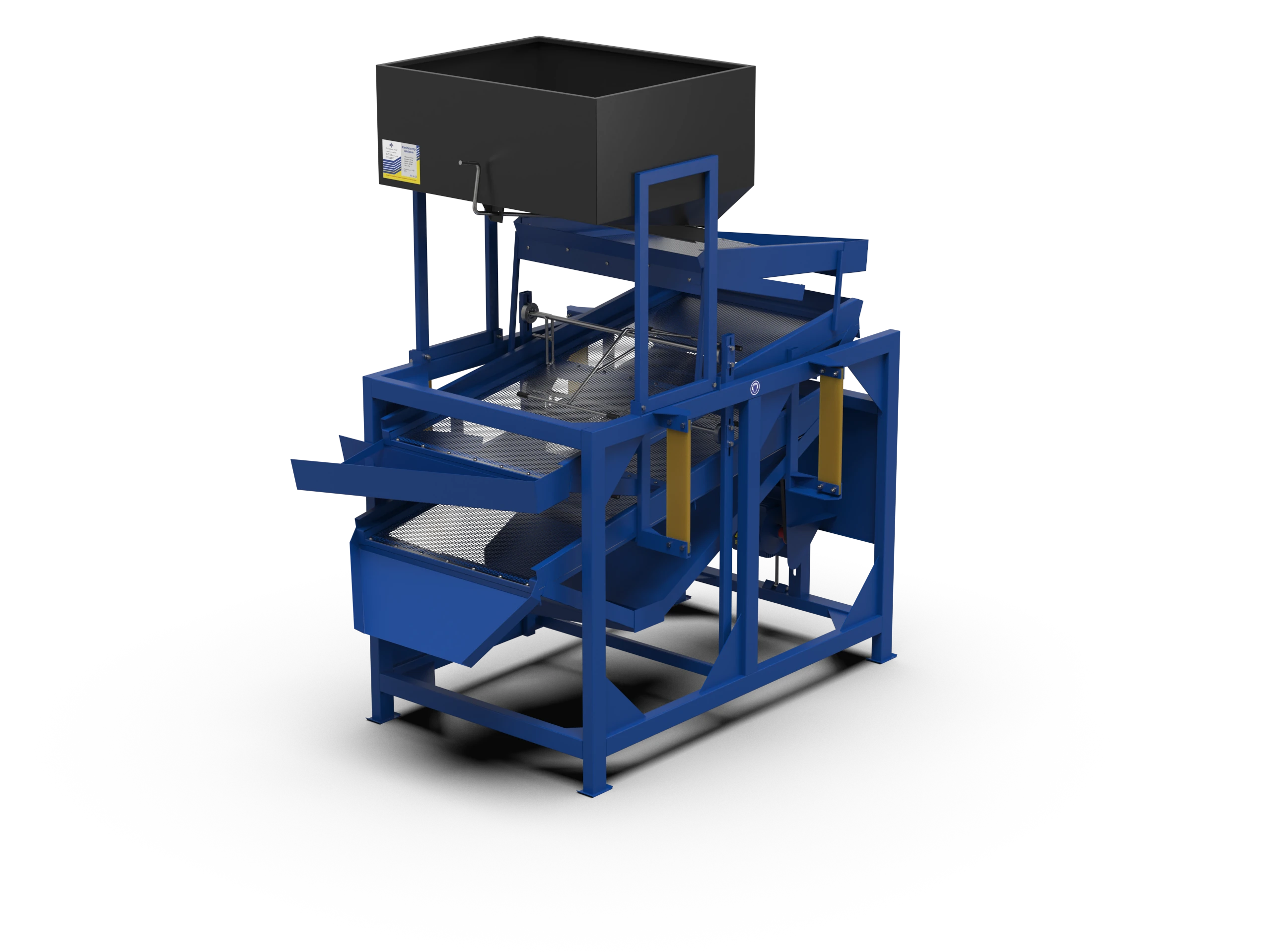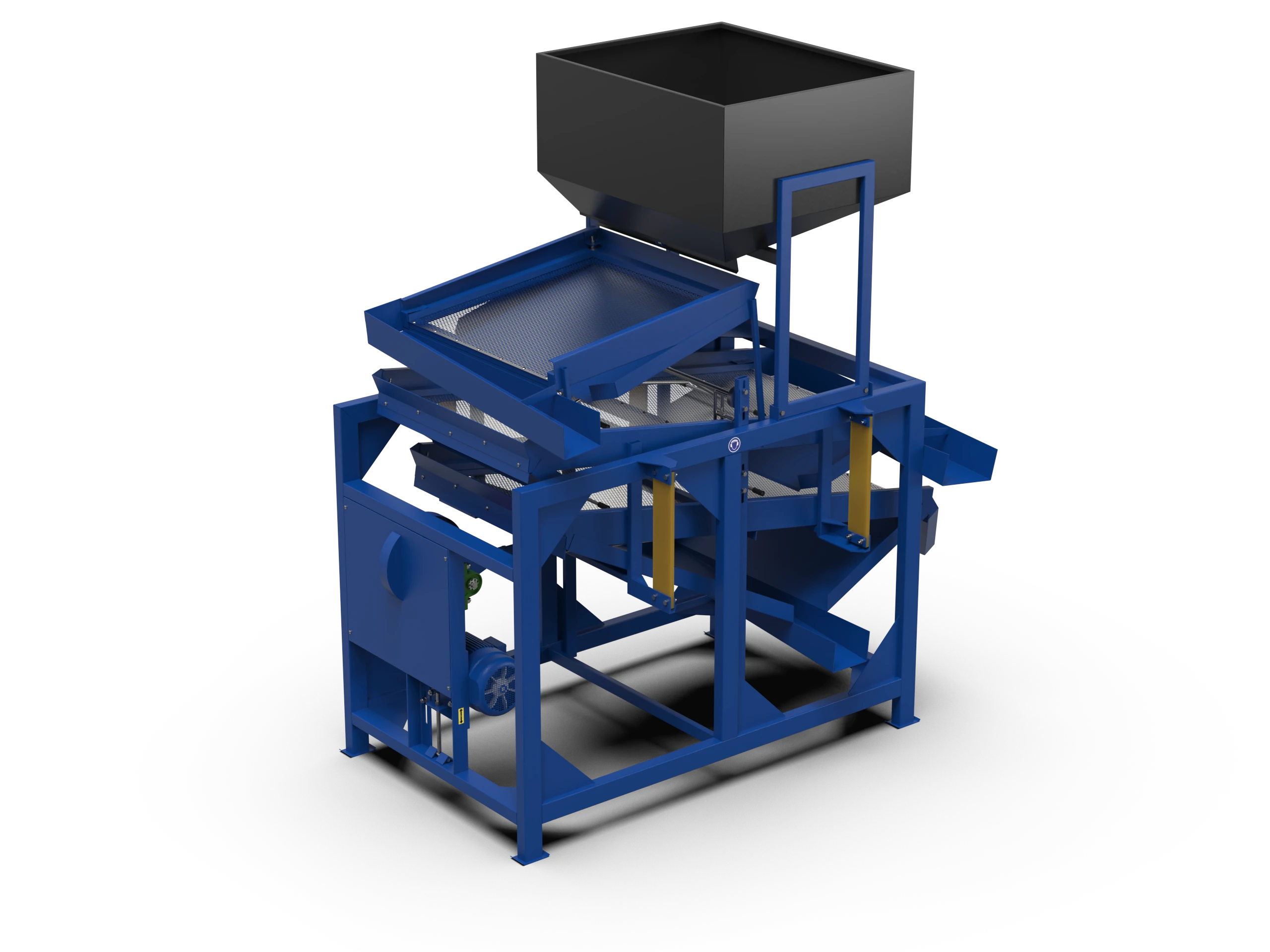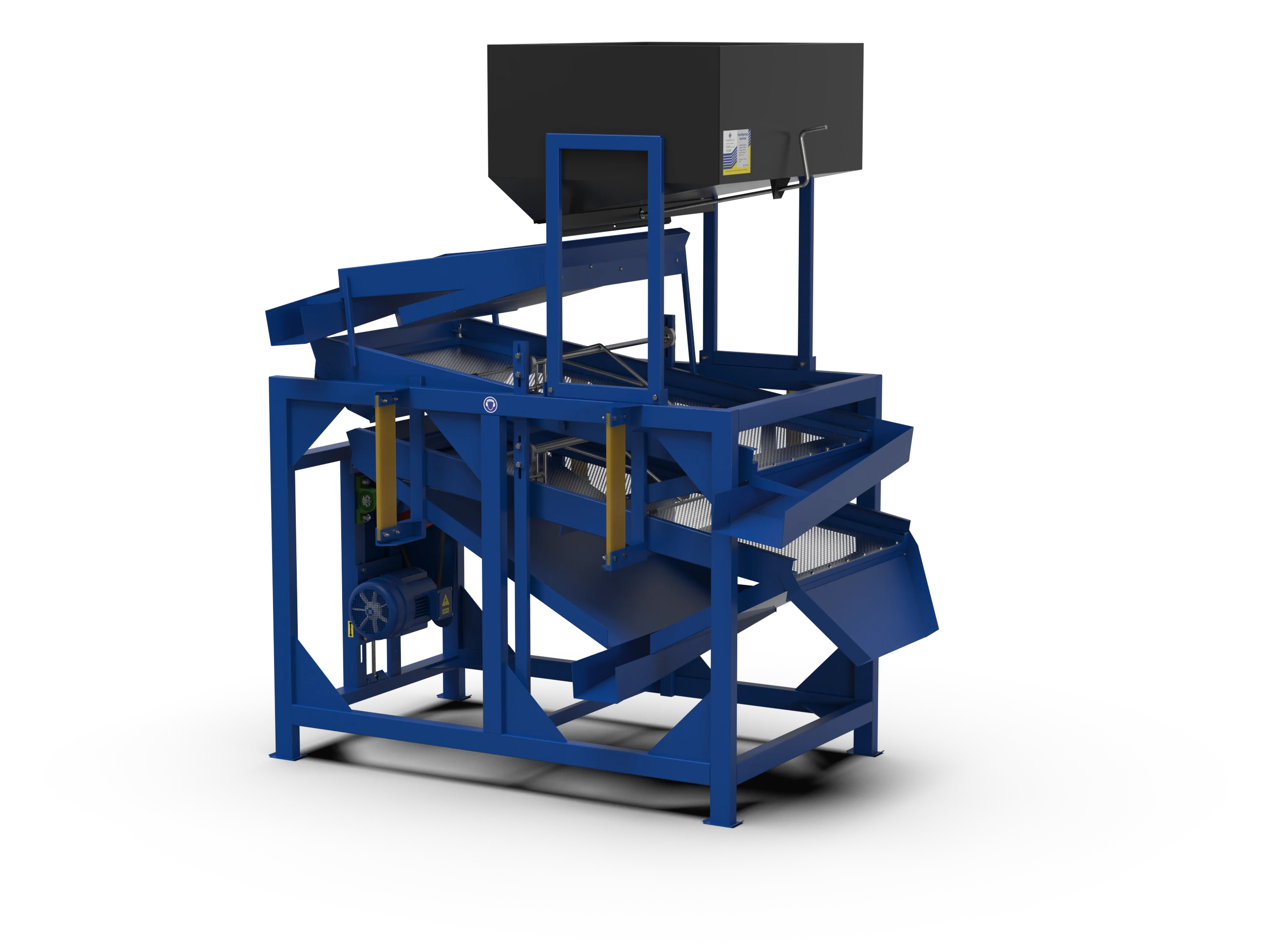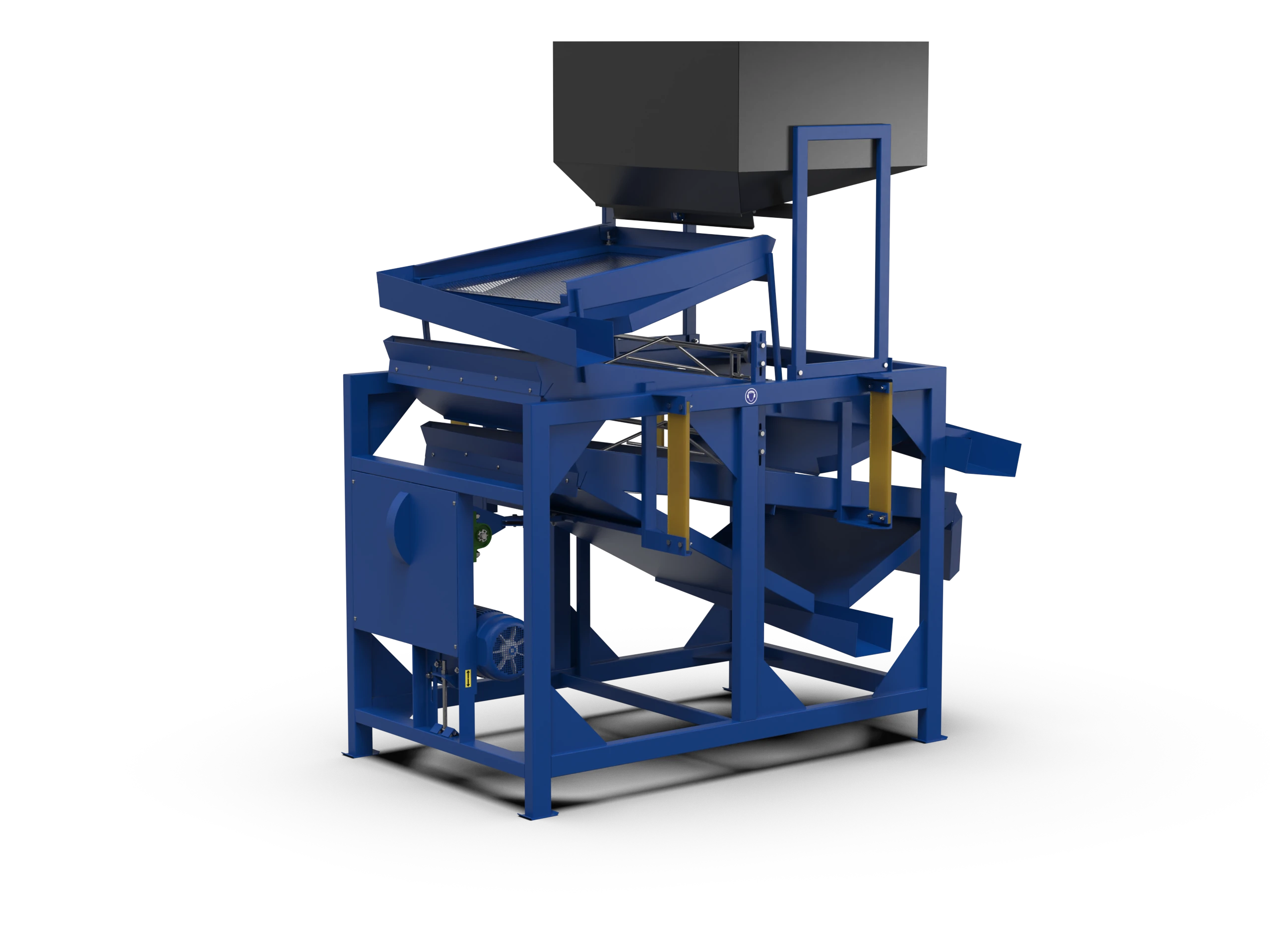 Impuritățile ușoare sunt sortate pe sita superioară, iar cele grele sunt sortatate pe prima sită a selectorului.